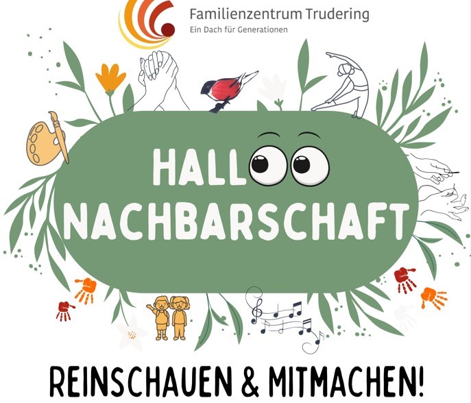 HallOO Nachbarschaft – Reinschauen & Mitmachen Es ist wieder so weit: Herzliche Einladung zu unserem Nachbarschaftsevent am Mittwoch, den 18. März von 17.30 – 19.30 Uhr mit vielfältigen Programmpunkten. Freuen Sie sich auf „Süßes&Salziges“ in unserem Dompfaff-Cafe. Das Team vom Familienzentrum Trudering, ein Dach für Generationen stellt sich und seine vielfältigen Projekte & Engagementmöglichkeiten vor. Machen Sie mit bei unserem ersten Vision-Board, gemeinsam wollen wir Impulse, Ideen, Perspektiven, Anregungen… für uns und die Nachbarschaft sammeln. … und zum Schluss wird getanzt… Eintritt frei – Spenden willkommen. Schaut rein – wir freuen uns auf Euch und Eure Ideen.