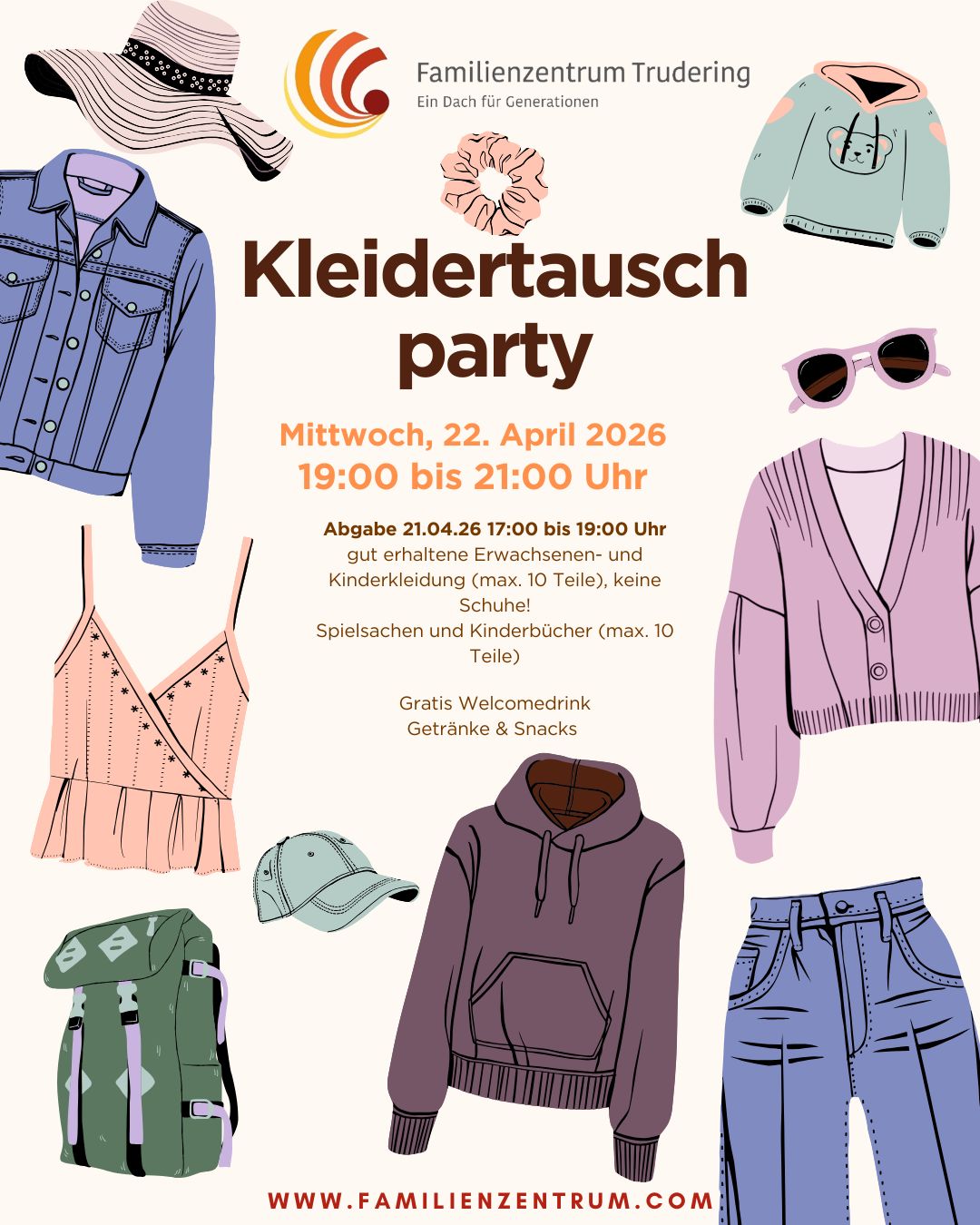 Kleidertauschparty am 22.04.2026 von 19:00 bis 21:00 Uhr