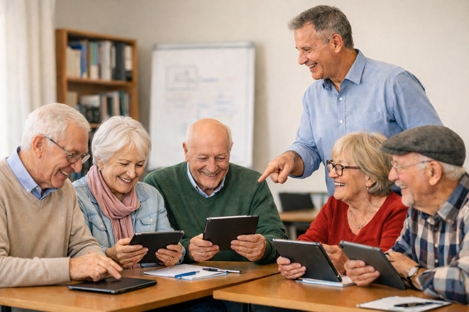… im Tabletkurs für Senior:innen erlernen Sie abhängig vom individuellen Kenntnisstand die Grundlagen und weiterführenden Schritte am Tablet, welches Sie sich von uns ausleihen können
